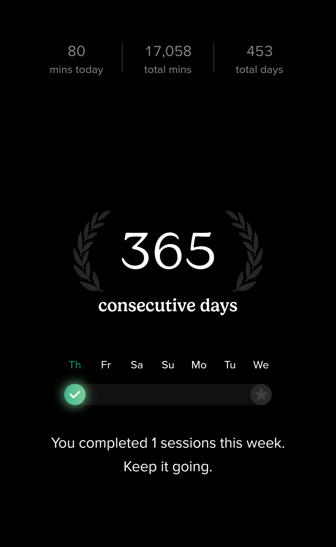I hit my 365 day mark this morning! I did an extra long session to commemorate the occasion.