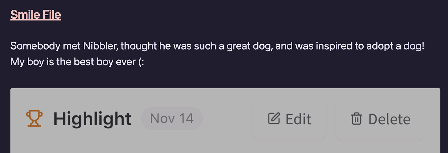 The Smile File is simple: a folder where I save every kind message, thank-you note, or small win I’ve earned.